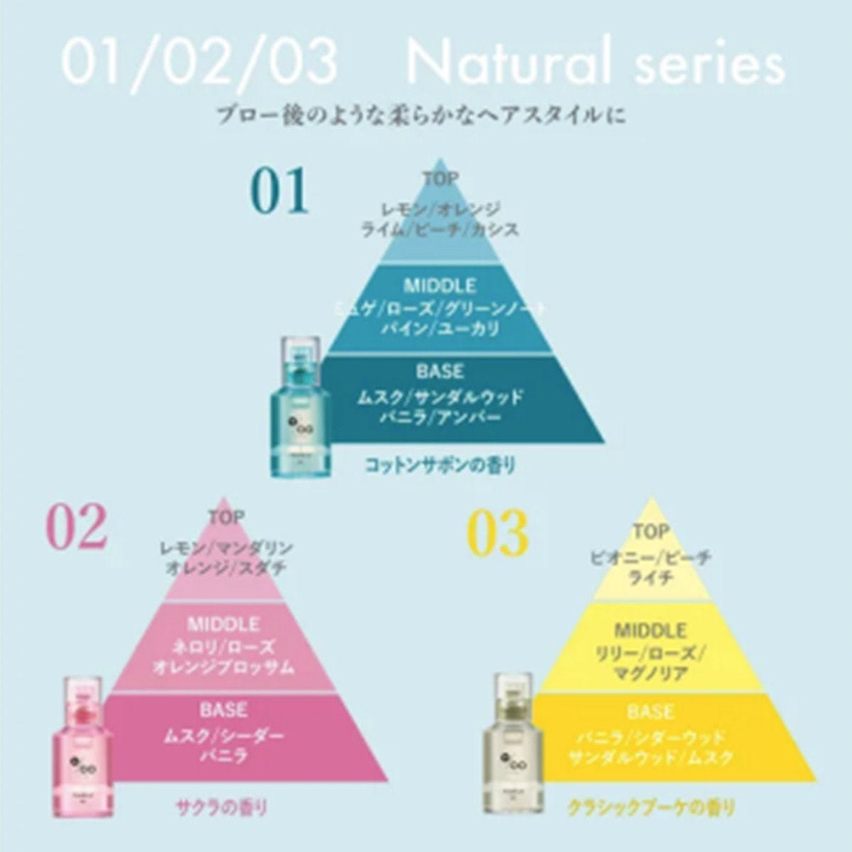 清潔感あふれる柔らかな石鹸の香りがふんわりと広がり、シトラスとフローラルノートが混ざり合います。