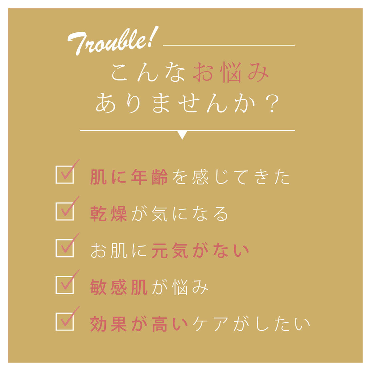 エイジングケアはもちろん、肌弾力、透明感、高保湿、角質ケア、毛穴ケア、口元ケア、目元ケアなど1度で驚きの結果を与えます。